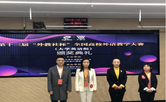 “外教社杯”全国高校外语教学大赛是我国最早举办的全国性的外语类教学大赛。大赛覆盖全国千余所高校,因其严谨、创新、公正、权威,获得了外语界一致赞誉和教育主管部门高度评价,在中国高等教育学会发布的《全国普通高校教师教学竞赛分析报告(2012-2020)》中,位列外语类教学大赛首位。