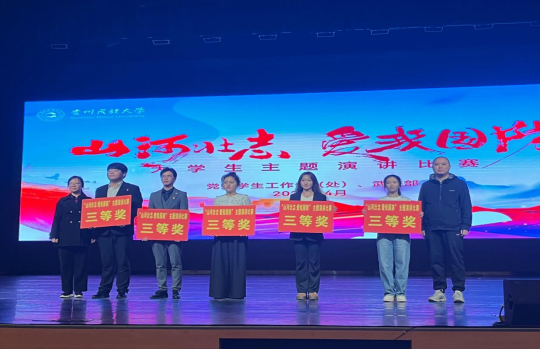 2025年4月25日下午3点,由学工部主办的贵州民族大学"山河壮志 爱我国防"大学生主题演讲比赛决赛在南校区学生活动中心大礼堂举行,米兰网_米兰(中国)2022级英语专业学生彭佳慧2023级英语专业学生敖冰婵组成团队参赛,在决赛中荣获三等奖,展现了外院同学心系国防、奋发向上的精神风貌。
