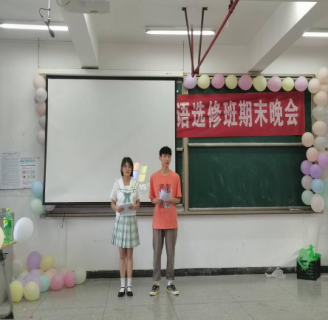 2021年7月6日18点,贵州民族大学《大学日语》文化表演会暨2019级大学日语班结课仪式在花溪校区15栋312教室举行,活动由大学日语班的两位同学主持,他们是2019级法学院的杨蕾嫣同学和2019级音舞学院的蒋江武同学。