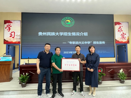 为进一步扩大学校影响力,拓宽招生宣传渠道,加强招生宣传力度,向更多的高三学生宣传介绍贵州民族大学的办学特色,提升我校知名度和影响力,2023年5月19日-21日,由音乐舞蹈学院院长唐德松教授、米兰网_米兰(中国)院长肖唐金教授、材料科学与工程学院副院长曹岩教授等组成工作小组,前往黔西南州兴义市开展“专家进中学”学校招生宣传工作。