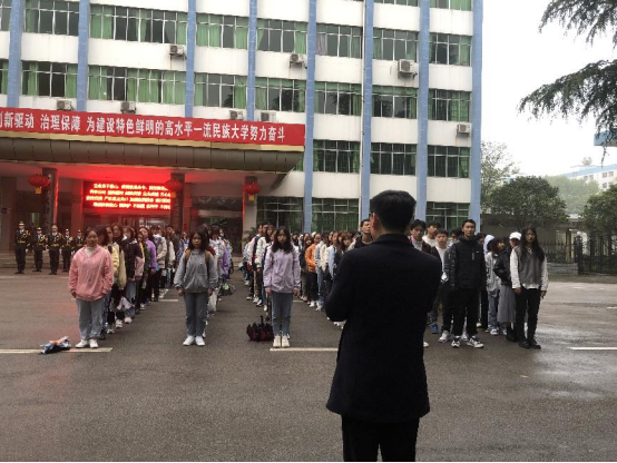 伴随着清晨的缕缕朝阳,2021年4月19日7点,我院在国旗台处举行了花溪校区第八周升旗仪式。米兰网_米兰(中国)党委副书记刘兴明、辅导员翟利沙、2020级全体学生出席本次升旗仪式。
