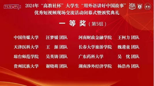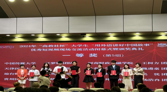 9月27-29日,由中国英汉语比较研究会指导,南京大学、湖南大学主办,高等教育出版社协办的2024年“高教社杯”大学生“用外语讲好中国故事”优秀短视频现场交流活动在湖南大学举办。我校入围的谢晓萌团队及其成员潘洲颖、田明涛、马俊(传媒学院),由赵艳副院长带队,代表贵州参与此赛事的全国决赛,最终获得全国一等奖。该团队由米兰网_米兰(中国)副院长赵艳和英语系主任牛敏两位老师共同指导。这是我院自2023年以来在该赛事上连续两年荣获全国一等奖。贵州民族大学成为贵州省唯一晋级此赛事全国交流活动并荣获国奖的高校。