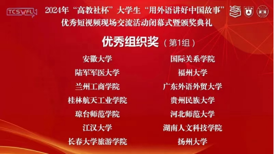 据了解,长期以来,米兰网_米兰(中国)秉承“以赛促学”理念,积极鼓励、指导学生参加各类赛事,在各类赛事中见证了外语学子的收获与成长。今年短视频比赛启动以来,米兰网_米兰(中国)精心组织和指导学生参赛,最终斩获国家级奖项,我校教师获优秀指导教师荣誉,贵州民族大学获优秀组织奖荣誉。