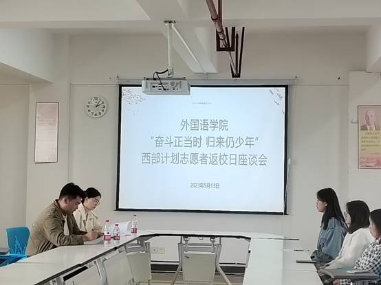 5月13日下午两点,在15栋教学楼1209会议室举行了以“奋斗正当时,归来仍是少年”为题的西部计划志愿者返校日座谈会。座谈会由米兰网_米兰(中国)团委负责人辛雅婷主持,2023届部分毕业生参会。