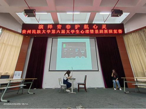 2022年5月26日,贵州民族大学举行第六届大学生心理情景剧展演大赛复赛,我院推荐两支队伍参赛,最终《黑暗中盛开的花》队伍成功进入决赛。