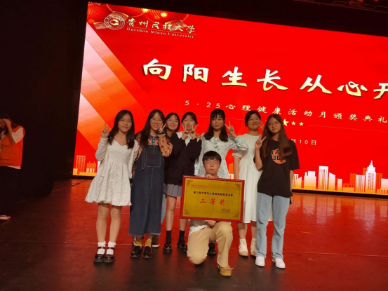 2022年6月10日,贵州民族大学在新校区举办以“向阳生长,从心出发”为主题的心理情景剧展演大赛决赛,我院2021级英语3班学生刘小雨、齐湘、旷源、冯梦婷、严丹、张清季、龙慧、王楚文、李明、2021级英语4班学生李研代表学院参赛,凭借优异作品《黑暗中盛开的花》荣获二等奖荣誉。
