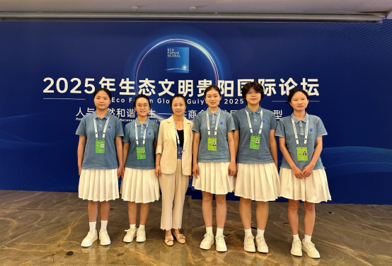2025年7月5日至6日,“2025年生态文明贵阳国际论坛”在贵阳举行。本届论坛以“人与自然和谐共生——共商全球发展绿色转型”为主题,来自海内外的嘉宾齐聚贵阳,共话绿色发展。受会议主办方邀请,外国语学院教师牛敏副教授参与了会议的外事接待和翻译服务,14名英语专业本科生和4名翻译硕士研究生作为志愿者全程参与了此次盛会,为会议的成功举行提供语言志愿服务。