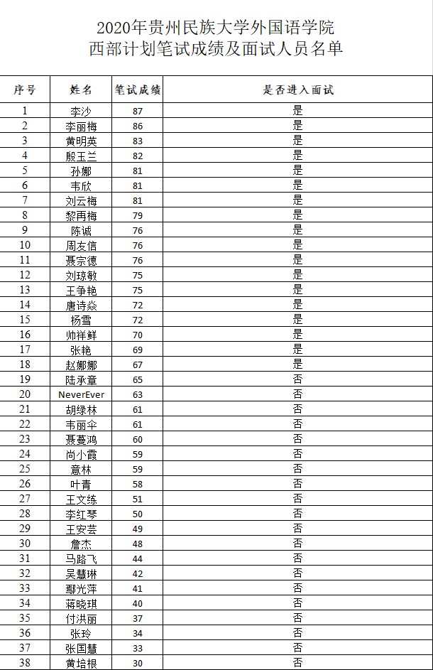 2020年米兰网_米兰(中国)大学生志愿服务西部计划笔试成绩及面试人员名单公示