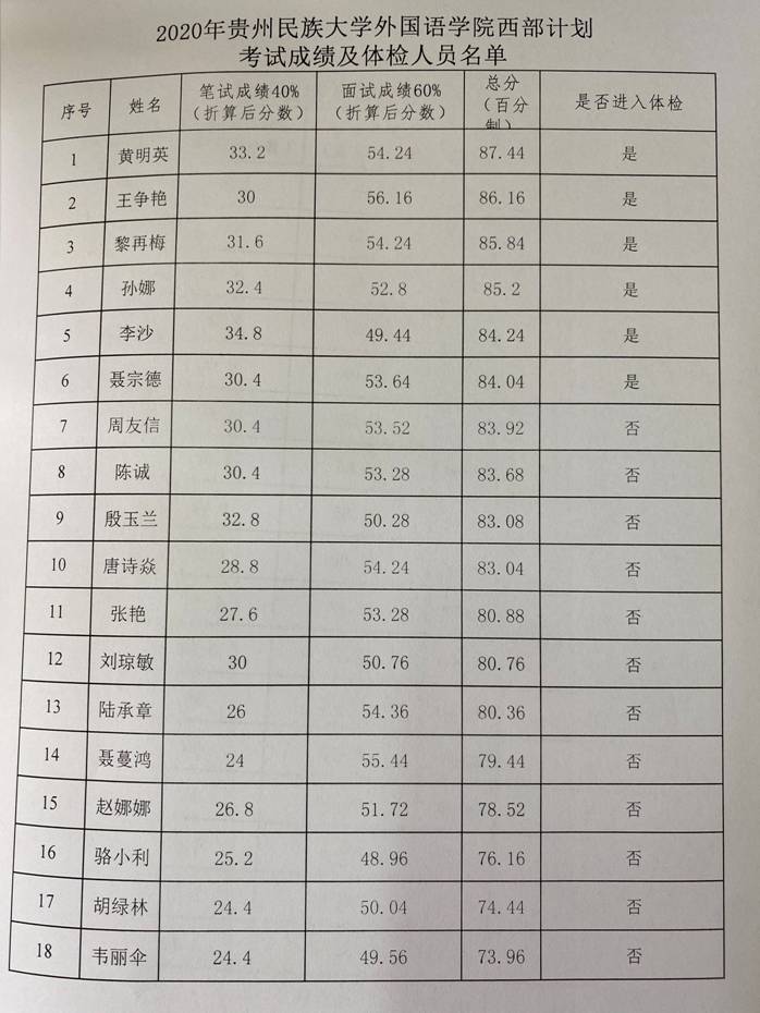 2020年米兰网_米兰(中国)大学生志愿服务西部计划考试成绩及体检人员名单公示